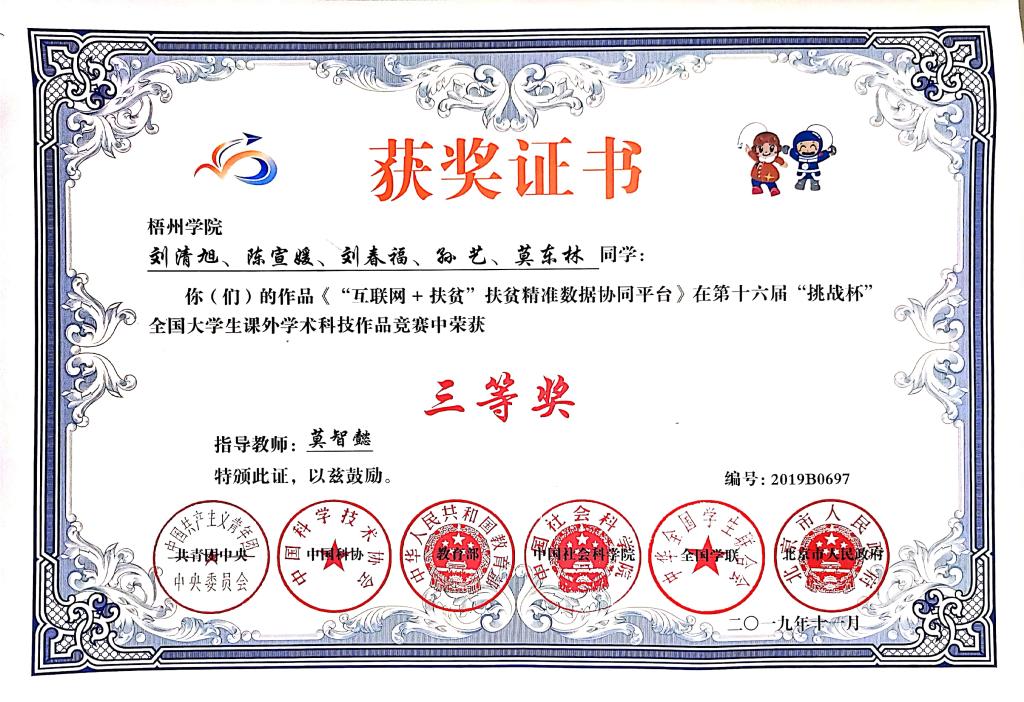 第十六届“挑战杯”全国大学生课外学术科技作品竞赛全国三等奖