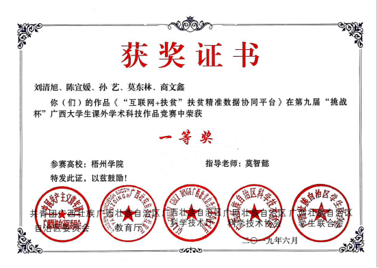 2019年“挑战杯”广西大学生课外学术科技作品竞赛一等奖