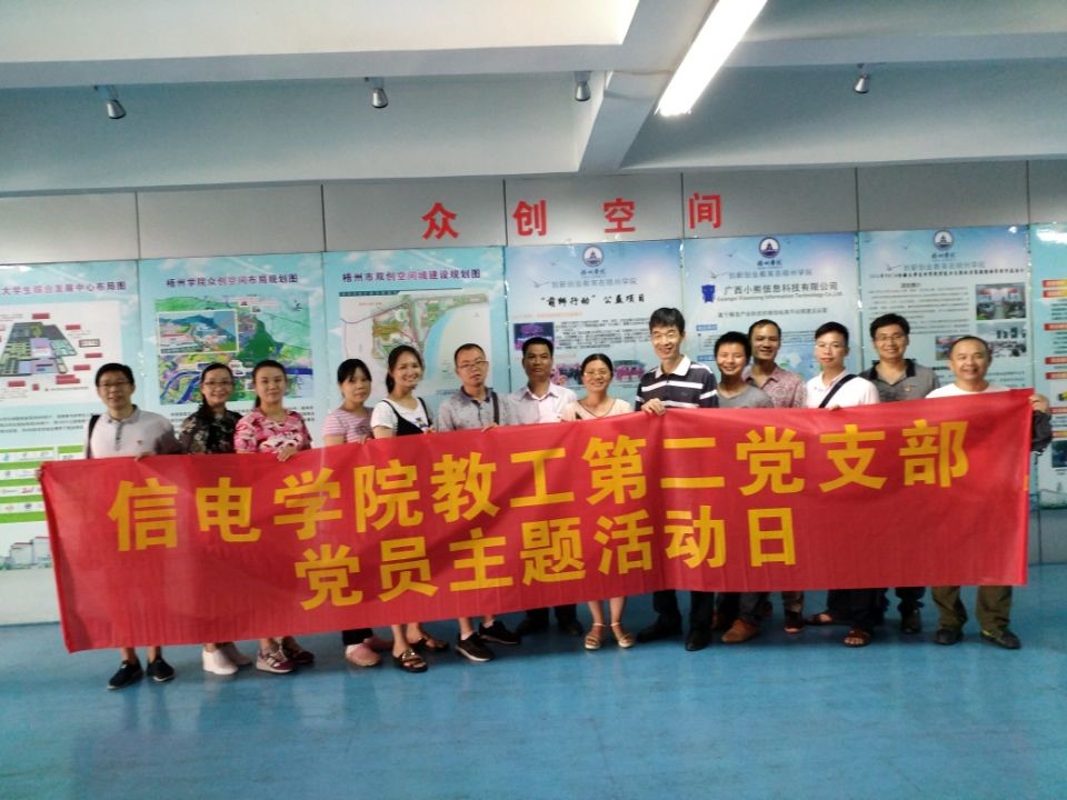 2018年5月26日,信电学院教工第二支部5月的“党员活动日”活动地点选在我校体育馆负一楼。这里正在进行2018年梧州学院第三届大学生创新创业活动路演比赛。支部书记姚高华老师介绍了信电学院大创项目的相关立项情况,支部党员参观了大创项目成果展,对信电学院参展项目存在的问题和不足提出了宝贵的意见。