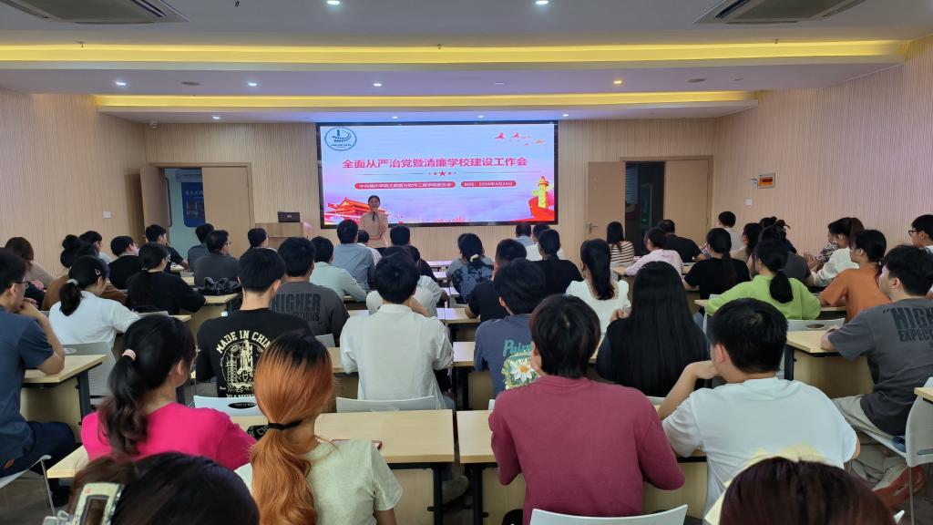 4月24日下午,大数据与软件工程学院党委在明科楼K902召开全面从严治党暨清廉学校建设工作会,全体师生党员参加会议,学院党委书记吴燕端主持会议。