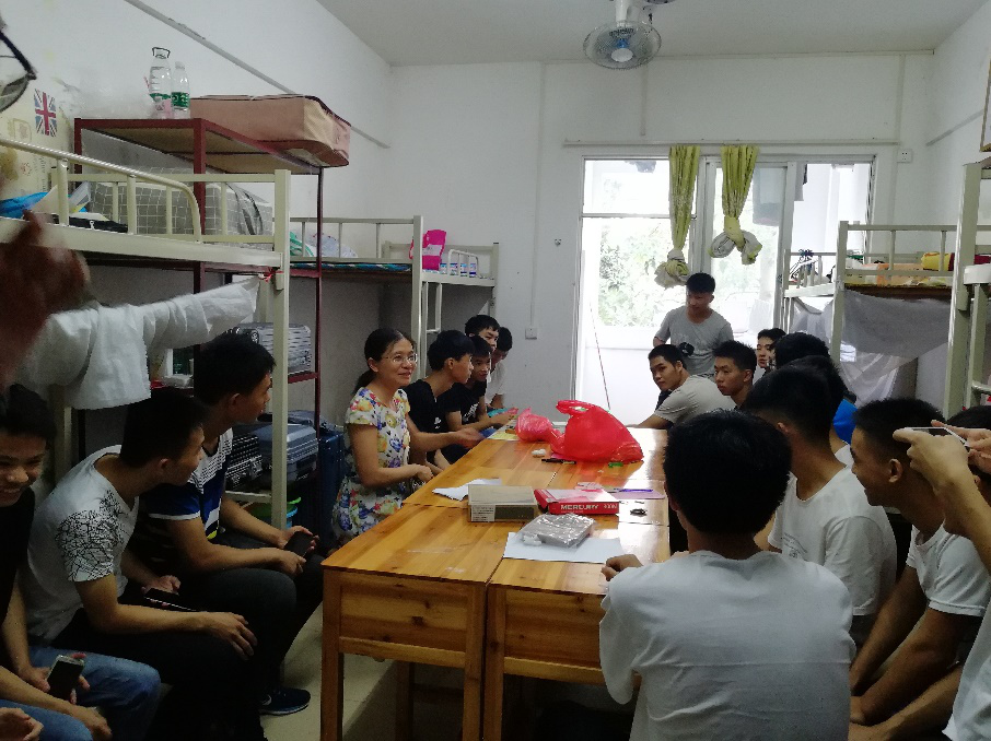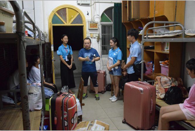 吴燕端老师,黄宏本老师每走进一间宿舍,都仔细询问新生的生活情况,嘱托同学们有困难、有问题就向辅导员班主任或宿管阿姨反应。在走访过程中,他们还嘱咐,希望新生们把学院当成自己的家,在生活上相互关爱,在学习上互相帮助,养成良好的生活学习习惯,珍惜大学时光,做到身心健康成长。