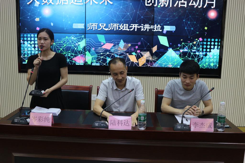 5月20日晚,大数据与软件工程学院在明理楼视频会议室开展学风建设季系列活动之“师兄师姐开讲啦”学习分享会,与同学们进行学习经验分享的优秀学长学姐有网络与信息化管理办公室副主任兼图书馆副馆长陆科达,2015级软件工程2班的李杰成和2016数字媒体技术班的岑彩纯。