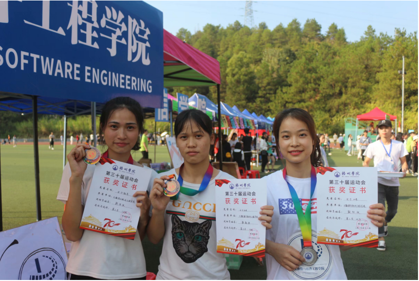 11月15日--16日,学校举行梧州学院第三十届田径运动会,经过两天的激烈角逐,大数据与软件工程学院的运动健儿们用他们的拼搏与汗水,展现了不惧困难奋勇向前的竞技精神,在女子跳高、女子200米、男子4*100米等项目中,取得了喜人的成绩,为学院赢得了荣誉。本届田径运动会中,学院共斩获金牌四枚、银牌五枚、铜牌九枚,田径比赛团体总分排名第二,荣获体育道德风尚奖第一名,运动会入场式表演三等奖。