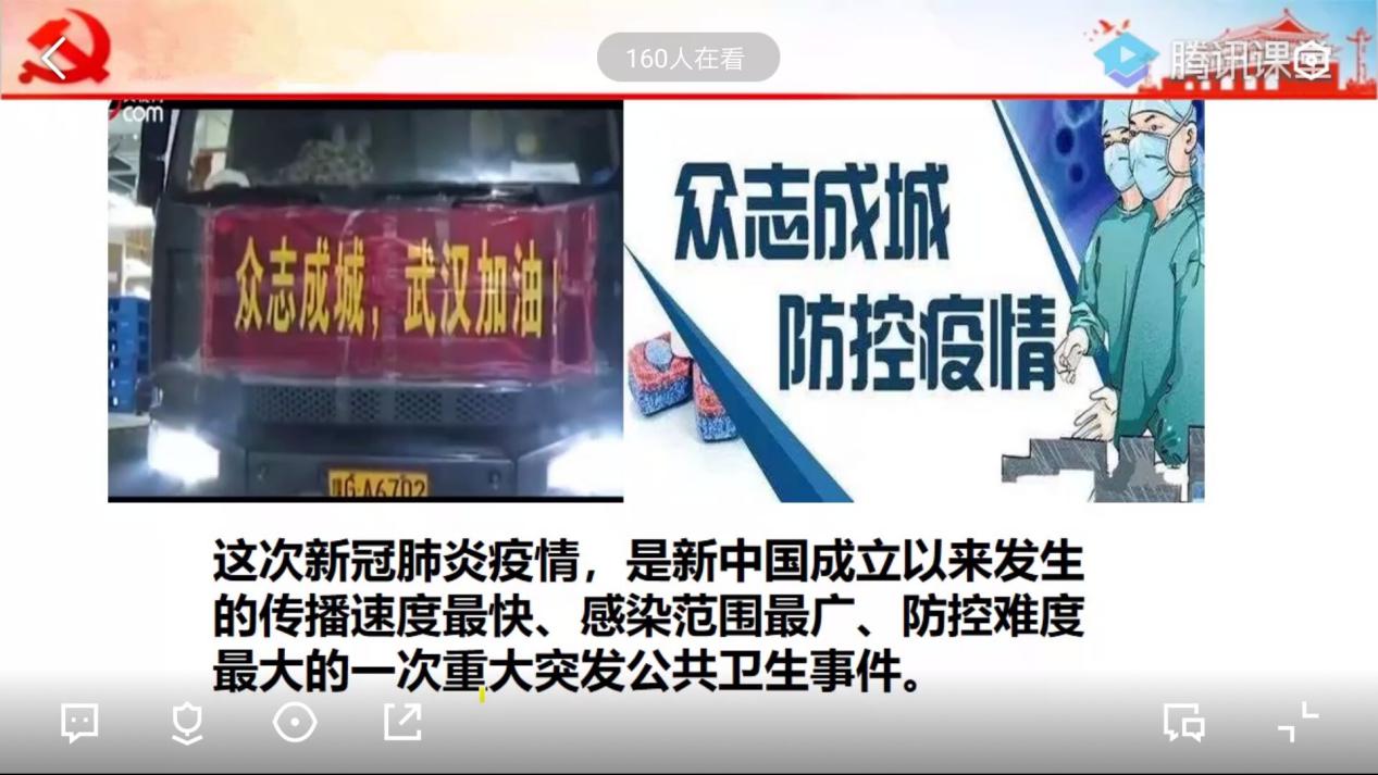 学院党委副书记韦翠兰老师以“悟初心、守初心、践初心”为主题,给同学们上了本次团校培训班的第一堂课。课堂上,韦翠兰老师结合本次新冠肺炎疫情向同学们讲述了我国应对重大突发公共卫生事件的强大处理方式及手段,以及在困难面前中国共产党如何践行初心,带领全国人民抗击疫情。最后,在互动环节中,同学们分享了想对在抗疫一线的工作人员们说的心里话。同学们纷纷表示,感谢那些默默无闻地坚守在抗疫一线的工作人员,他们在用生命支撑着我们伟大的祖国!