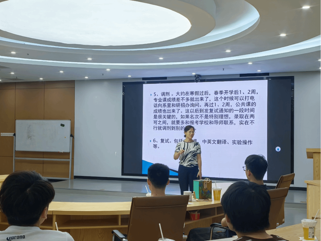 7 月 20 日上午,电子信息与人工智能学院在科技楼 1108 教室开展暑期备考辅导和慰问活动。学院党委书记韦衡冰、副书记梁韵,授课教师蒙懿、带班辅导员以及 50 余名留校备战考研考公考编学子参加此次活动。
