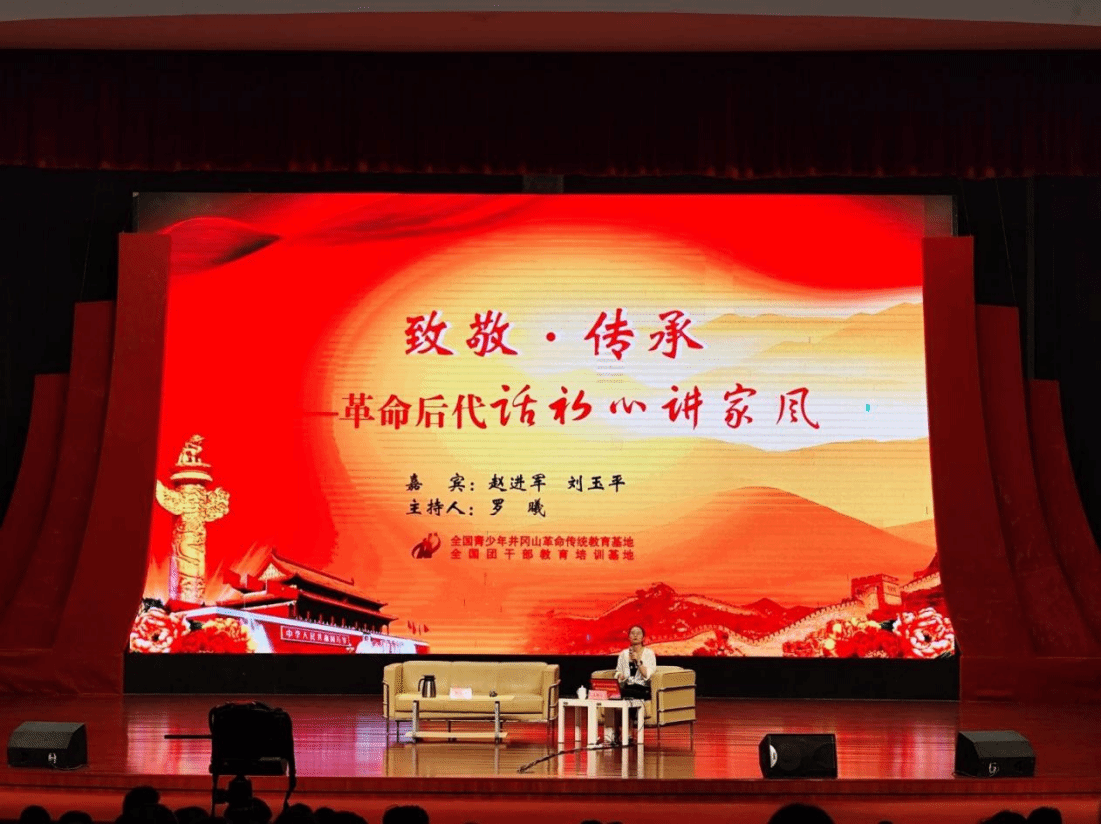 在“革命后代话初心·讲家风”访谈教学活动中,开国少将赵杰将军女儿赵进军老师深情讲述,带大家回到那个战火纷飞的年代下她的父亲身负九处战伤依然为国家人民抛头颅洒热血;母亲在简陋医疗条件下无私救助伤员;大弟赵建军抗美援越,在战争中即使牺牲自己也要坚守岗位、毫不退缩,展现着革命军人的伟大精神与崇高使命;赵家“六路大军”的命名无不体现着赵家“没有共产党就没有我们家的信仰”。刘光典烈士儿子刘玉平老师上台,怀着对父亲的思念与敬意,讲述父亲在新中国成立后深入台湾传递情报,机智勇敢、化险为夷,用生命诠释了隐蔽战线的“有苦不说、有怨不报、有气不撒、有困难咬牙坚持”的四有家风。