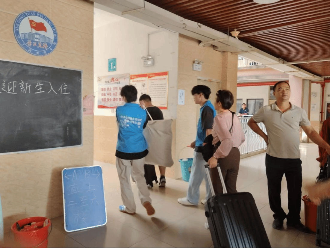 报到现场秩序井然,新生们在工作人员和志愿者的引导下,有序完成入学办理。学院领导高度重视迎新工作,亲临现场指导,与新生及家长亲切交流,关心大家的入学体验,并勉励同学们尽快适应大学生活。志愿者们统一着装,忙碌在迎新一线——在宿舍楼下迎接新生、协助行李搬运,并提供报到引导等服务。他们以热情的微笑和细致的帮助,让新同学们真切感受到学院的温暖与关怀。