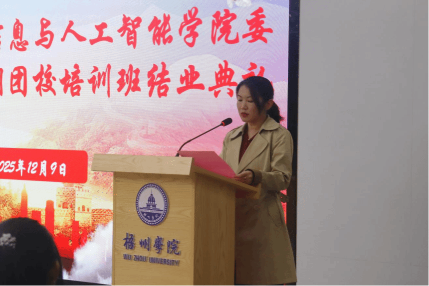 12月9日,电子信息与人工智能学院第一、二期团校培训班结业典礼于明科楼k1108举行。学院党委副书记梁韵、团委书记肖月花出席典礼,与全体团校学员共同回顾学习历程,展望未来征程。