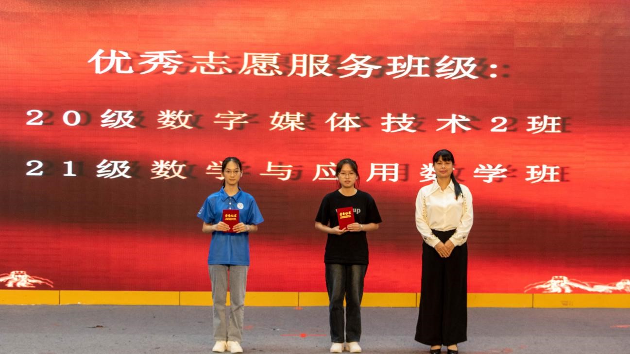 大会在《青年志愿者之歌》歌声中拉开帷幕,党委副书记韦翠兰老师为大会致辞,她充分肯定了学院的青年志愿者们在过去一年的工作成绩,同时希望更多的同学参与其中,希望广大青年大学生增强志愿服务自觉性,通过志愿服务,奉献社会,温暖他人,成长自我,积极投身到志愿服务中来。接下来的颁奖仪式,参会领导嘉宾们分别为获得学院2020年度“优秀志愿者”、“爱心支教之星”、“志愿服务优秀班级”等奖项的代表颁发荣誉证书。