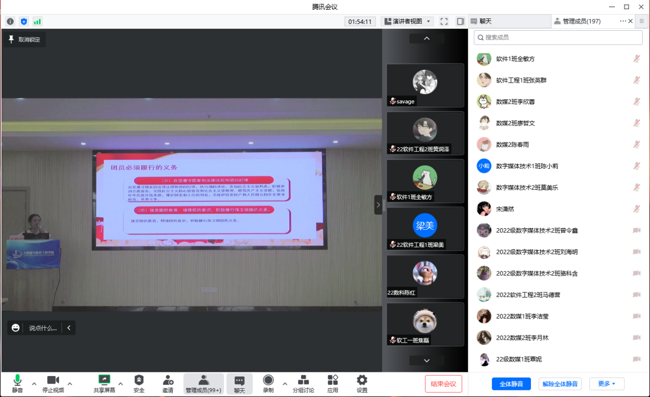 为充分发挥共青团对青年学生的思想引领作用,增强共青团组织的吸引力凝聚力,9月18日上午,大数据与软件工程学院团委在线上开展“青春向党,强国有我”2022级新生开学第一节团课活动。