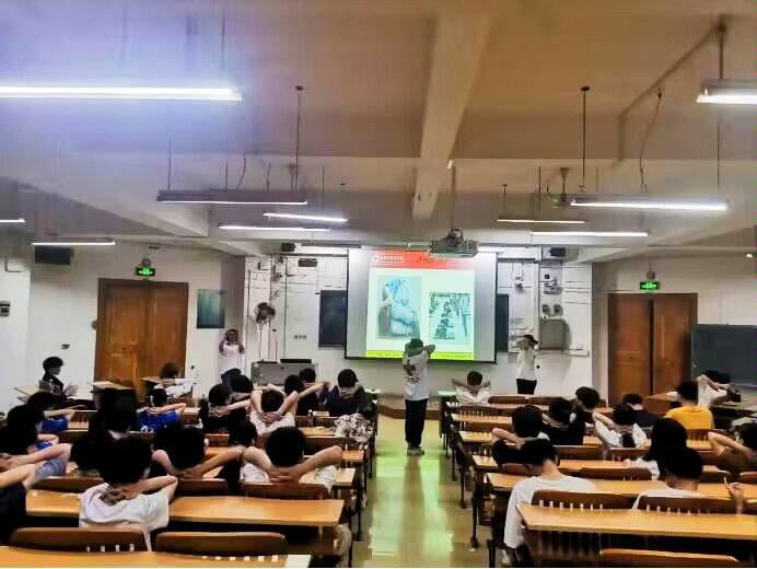 会上,梧州市红十字会急救知识培训师谭晓芬、黄姬、练燕萍、石芸依次向同学们讲解了救护新观念,外伤出血后简单的止血、包扎、固定方法,以及常见的意外伤害,心肺复苏、海氏急救法等急救知识。在互动过程中,培训师还开展一对一指导实践操作,使同学们进一步巩固了所学知识,掌握了应急救护的基本技能。