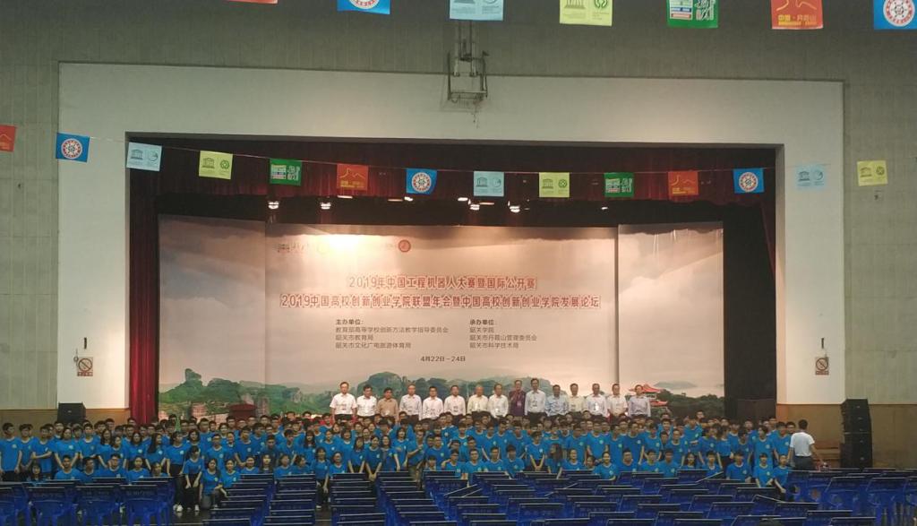 由教育部高等学校创新方法教学指导委员会、韶关市文广旅体局、韶关市教育局主办的“2019年中国工程机器人大赛暨国际公开赛”于2019年4月21日-24日在韶关学院举行。学校相关部门高度重视,首次组织参加该赛事,由电子与信息工程学院选拔出15名学生组成五组参赛队,其中两组参赛队获得国家级一等奖、三组参赛队获二等奖,五名教师获奖指导老师奖。该次比赛有来自全国各省、市、区(包括香港和澳门特区)及新加坡等301所高校的1726支代表队的8000余师生参加比赛。