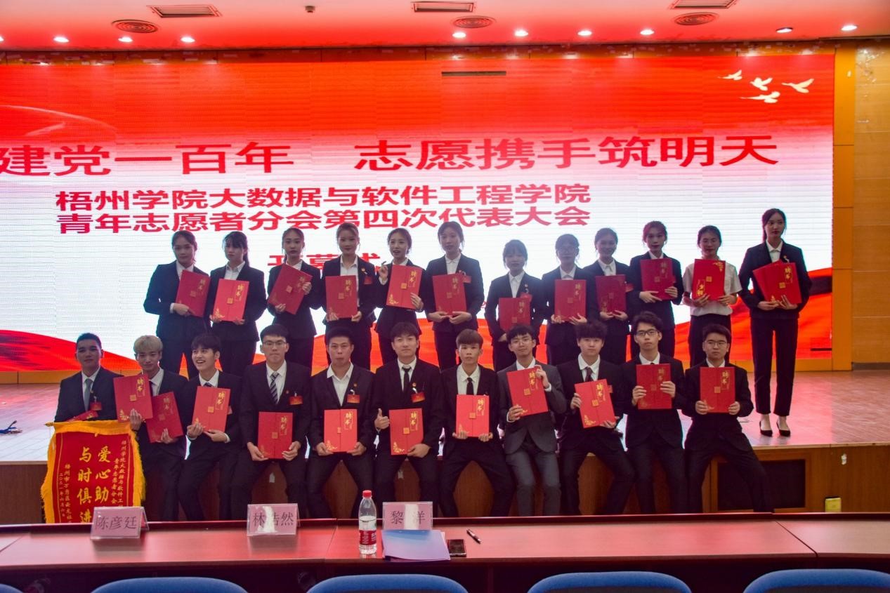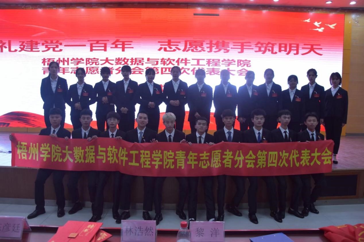 大数据与软件工程学院于2021年6月6日下午在学术报告厅召开青年志愿者分会第四次代表大会,主题为“献礼建党一百年,志愿携手筑明天”,学院党委副书记韦翠兰老师、团委副书记朱晓芹老师,梧州市万秀区残联肢残人协会主席李国楹及万秀区云龙社区团委负责人、校青协负责人、各二级学院分会代表、学院学生会代表和各班级的代表共110人参加了本次会议。