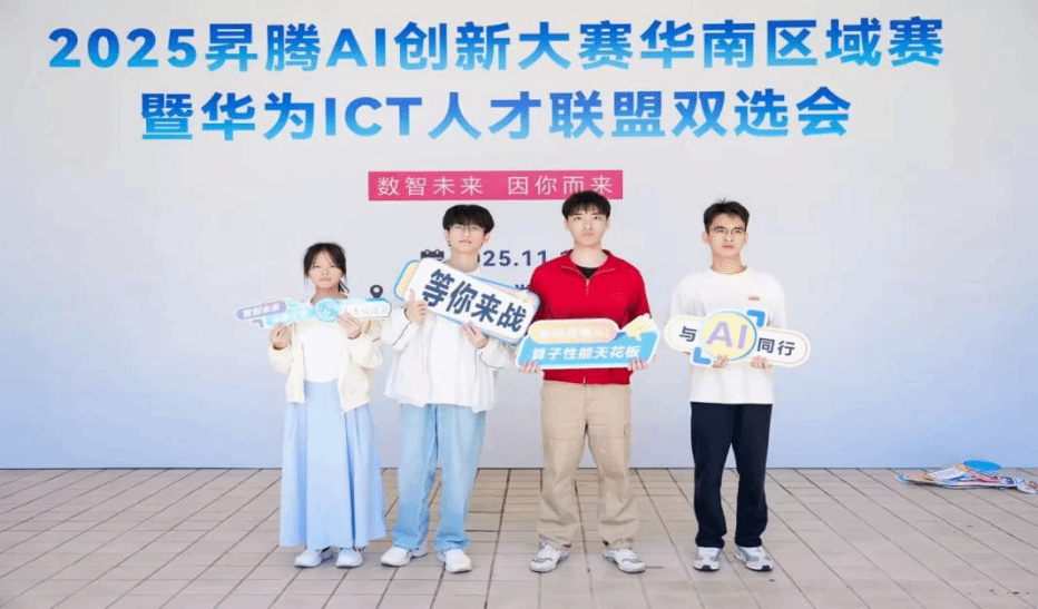 11月15日,2025昇腾AI创新大赛华南区域赛在广东工业大学落幕,来自电子信息与人工智能学院的黄楗桦、黄家郎、杨思容和孔胤等4名同学组为赛队前往参赛。团队齐心协力、众志成城最终在众多双一流高校队伍中脱颖而出,荣获高校赛道最佳原生创新奖。