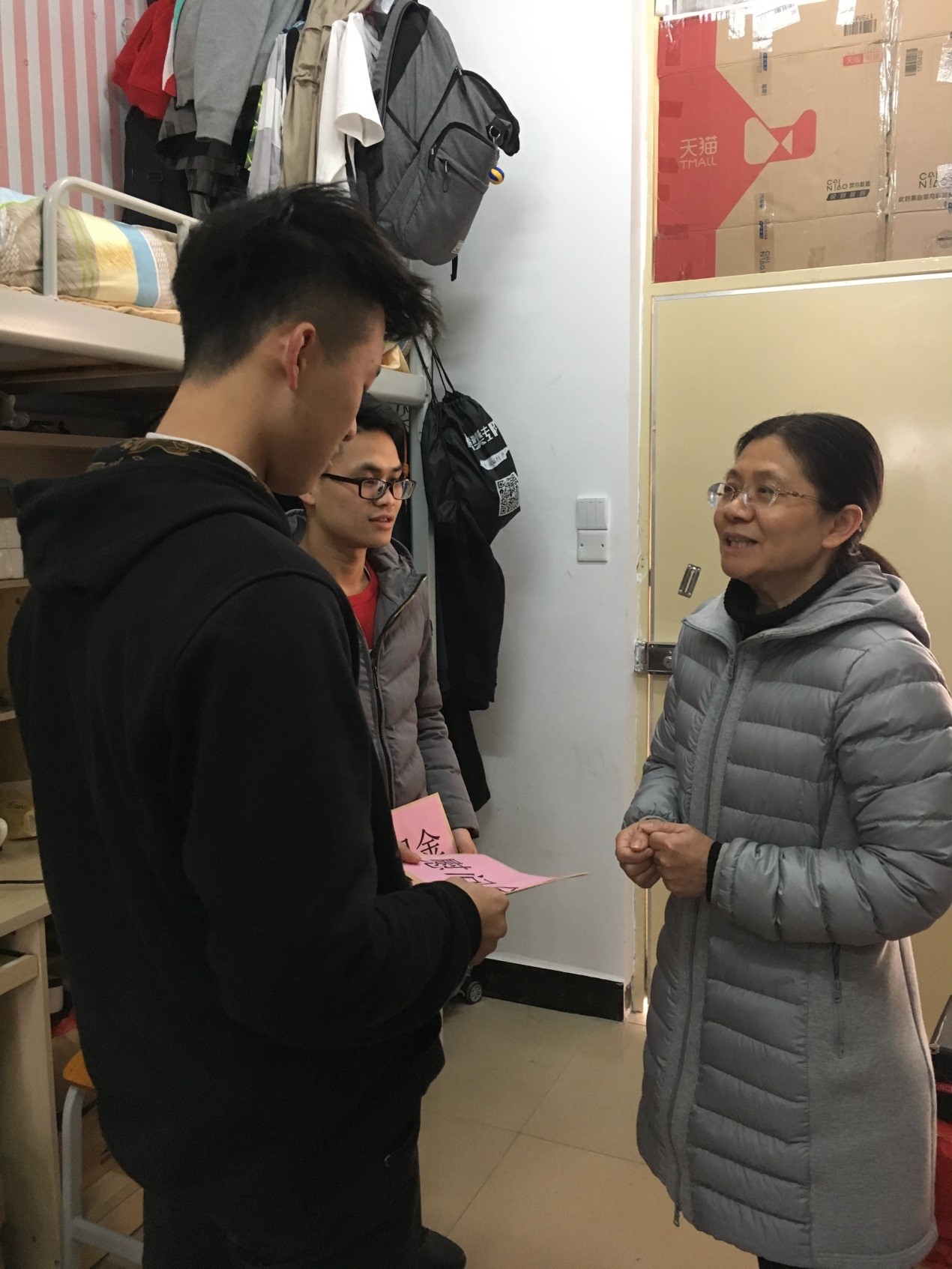 为了积极响应学校开展形式多样的假期慰问活动的号召,进一步做好家庭经济困难学生资助工作,关爱家庭经济困难学生的成长,进一步落实以学生为本的理念。1月21日上午,大数据与软件工程学院组织教师走进学生宿舍,慰问尚未离校的家庭经济困难学生,并由党委书记吴燕端同志为家庭经济困难学生送上慰问金。