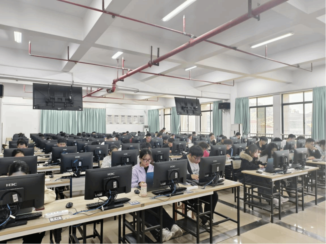 本次比赛吸引了来自学院各年级的众多编程爱好者同台竞技。赛场内,气氛紧张而有序,键盘敲击声此起彼伏。参赛选手们全神贯注,紧盯屏幕,指尖在键盘上飞舞,将缜密的逻辑思维转化为一行行高效的代码,力求在有限的时间内解决一道道极具挑战性的算法与程序设计题目。他们或凝神思索,或快速键入,充分展现了电子信息与人工智能学院学子扎实的专业基础、敏锐的逻辑思维和勇于挑战的创新精神。