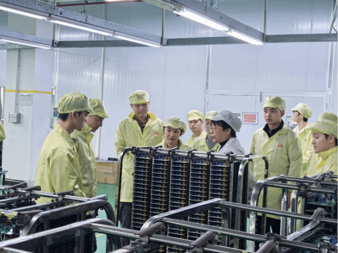 在广西普德新星电源科技有限公司,企业人力资源负责人围绕岗位招聘需求展开介绍,明确了研发类、工程技术类等岗位的专业能力要求,并带领师生走进生产车间,实地观摩电子设备、开关电源等产品的生产流程,现场解答毕业生关于薪资福利、岗位前景的咨询。