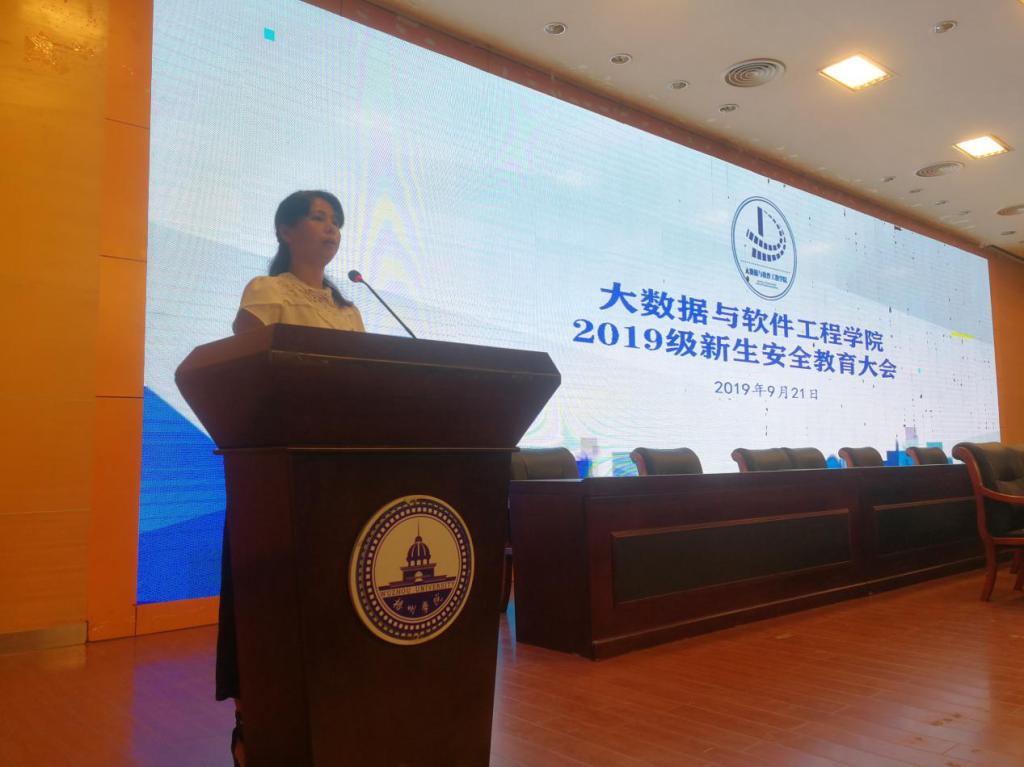 9月21日晚上,大数据与软件工程学院在明理楼学术报告厅召开2019级新生安全教育大会。党委副书记韦翠兰、学工办主任朱晓芹、专职组织委员邵晋芳和班主任参加了本次会议。