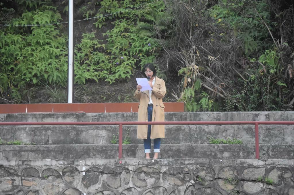 在国旗护卫队的护送下,五星红旗在庄严的国歌声中缓缓升起,全场行注目礼。随后,学生党员代表卢月明发表以“不忘初心、牢记使命”为主题的国旗下讲话,她号召同学们不要荒度光阴,要做新时代的圆梦人和追梦人,立鸿鹄志,做奋斗者。曾雨珊老师也强调,作为一名青年大学生,要坚定理想信念,在为实现中华民族伟大复兴的中国梦不懈奋斗。