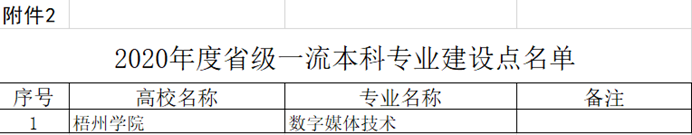 近日,教育部办公厅公布了《关于2020年度国家级和省级一流本科专业建设点名单的通知》(教高厅函〔2021〕7号),我校大数据与软件工程学院的数字媒体技术专业获批省级一流本科专业建设点。