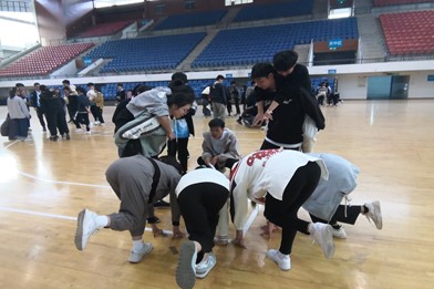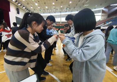 活动开始前,主持人把同学们分为六组,并互相介绍加深认识。比赛要求每一个小队有一个属于自己的队名和口号,并且进行才艺展示。大家纷纷投入其中,比赛还没开始便充满趣味,想出了很多充满创意的队名和口号。主持人向大家讲解活动规则,并做好热身运动。第一个游戏是“反动作”,活跃现场气氛,让大家迅速进入状态。