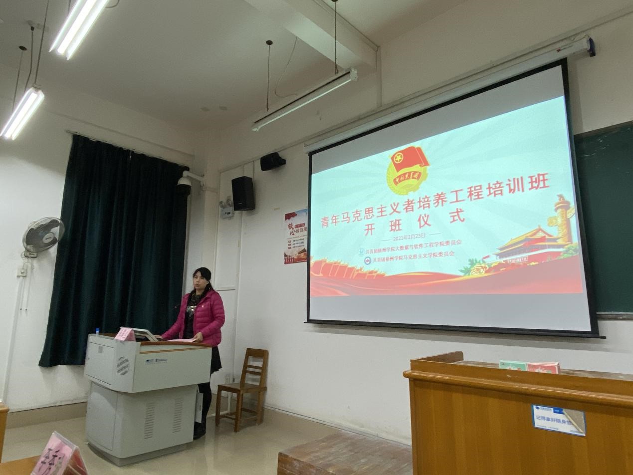 为不断提高学院青年大学生的思想政治素质、政策理论水平、创新能力、实践能力和组织协调能力,大数据与软件工程学院联合马克思主义学院于3月23日在明理楼M501举行2021年“青年马克思主义者培养工程”培训班开班仪式,大数据学院党委副书记韦翠兰老师、马克思主义学院团委书记冼春妮老师、大数据学院团委副书记朱晓芹老师、大数据学院青年委员李秀瑜老师及本次培训班全体学员参加开班仪式。