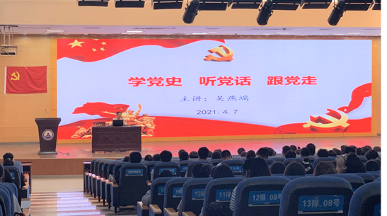 开班典礼结束后,吴燕端同志为入党积极分子上了题为“学党史、听党话、跟党走”的第一节党课,结合党史学习教育的内容,以新民主主义革命时期的中国共产党发展的艰辛历程为主线,阐明坚持党的领导和社会主义道路是历史和人民的必然选择,鼓励学员利用好党史学习教育的机会,学党史、悟精神,为中华民族的伟大复兴贡献青春和力量!
