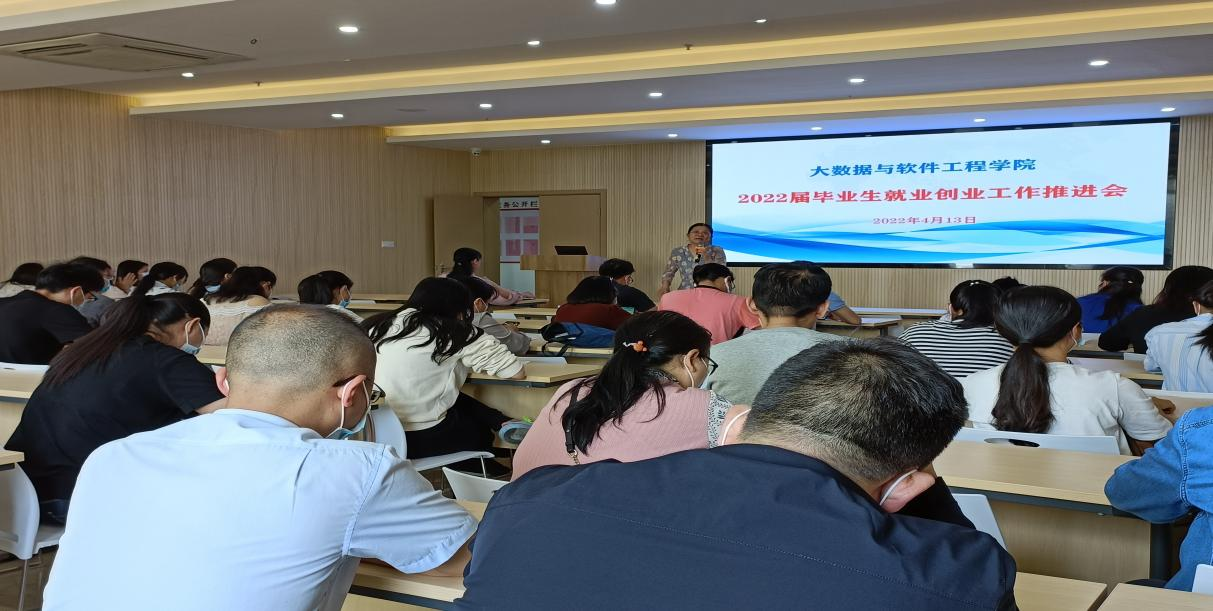 4月13日下午,大数据与软件工程学院在科技楼K902会议室召开2022届毕业生就业创业工作推进会,学院全体教职工参加会议。