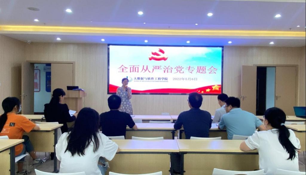 5月6日下午,大数据与软件工程学院组织召开全面从严治党专题会议,会议由学院党委书记吴燕端主持,学院党委委员、各党支部书记、教研室主任参加会议。