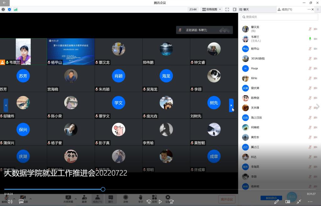 为了进一步推进2022届毕业生就业工作, 7月22日晚上,大数据与软件工程学院在腾讯会议召开2022届毕业生就业创业工作第三次推进会。会议由学院党委副书记韦翠兰主持,学院全体教职工参加了会议。