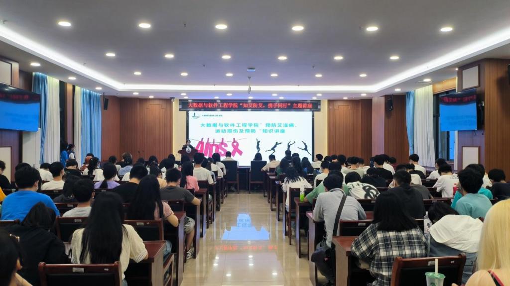 11月11日晚,大数据与软件工程学院在明科楼K101开展“知艾防艾,携手同行”主题讲座,桂东人民医院感染性疾病科主任助理郭稳稳老师、中医骨伤科主治医师张禹老师、医务社工部负责人黄冬至老师、学院团委副书记朱晓芹老师及22级各班级代表参加讲座。