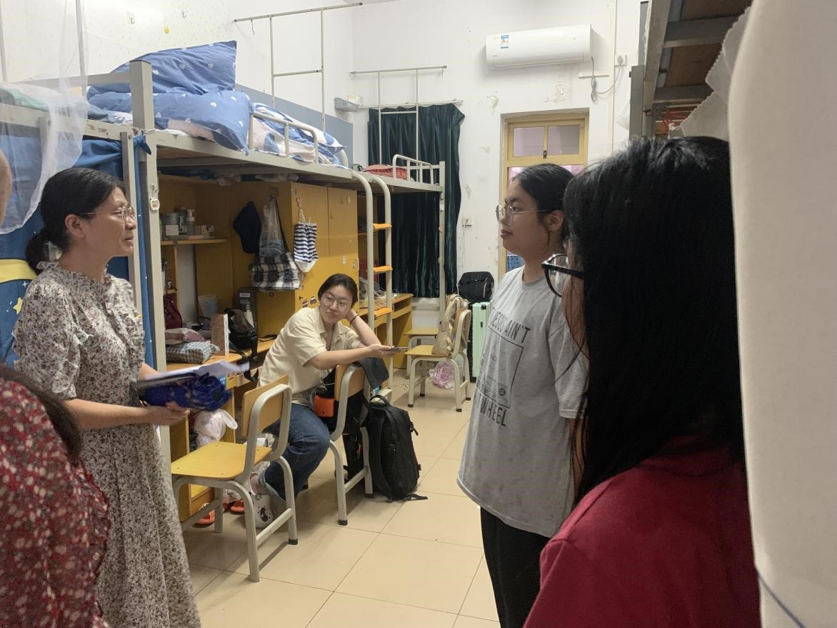 在走访过程中,老师们与同学们亲切交谈,了解同学们的家乡、家庭情况和专业、入校感受等,并就学生提出的生活和学习方面的问题进行解答。还向新生提出期望,希望同学们尽快转变角色,熟悉校园环境,建立和谐友好的人际关系,以积极的心态和良好的面貌适应大学校园生活。并提醒同学们要注意宿舍用电防火、人身财产安全和防范电信网络诈骗,强化安全意识和自我保护意识,遇到困难及时和辅导员、班主任老师沟通交流。