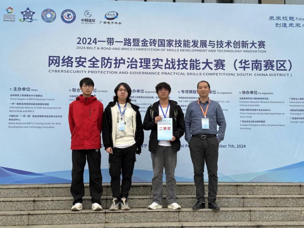 近日,2024第八届一带一路暨金砖国家技能发展与技术创新大赛之首届网络安全防护治理赛项选拔赛(华南赛区)落下帷幕,大数据与软件工程学院的参赛队伍表现出色,在网络安全防护治理实战技能大赛中奋力拼搏,获得华南赛区二等奖1项,在本科组所有参赛队伍中排名第四。