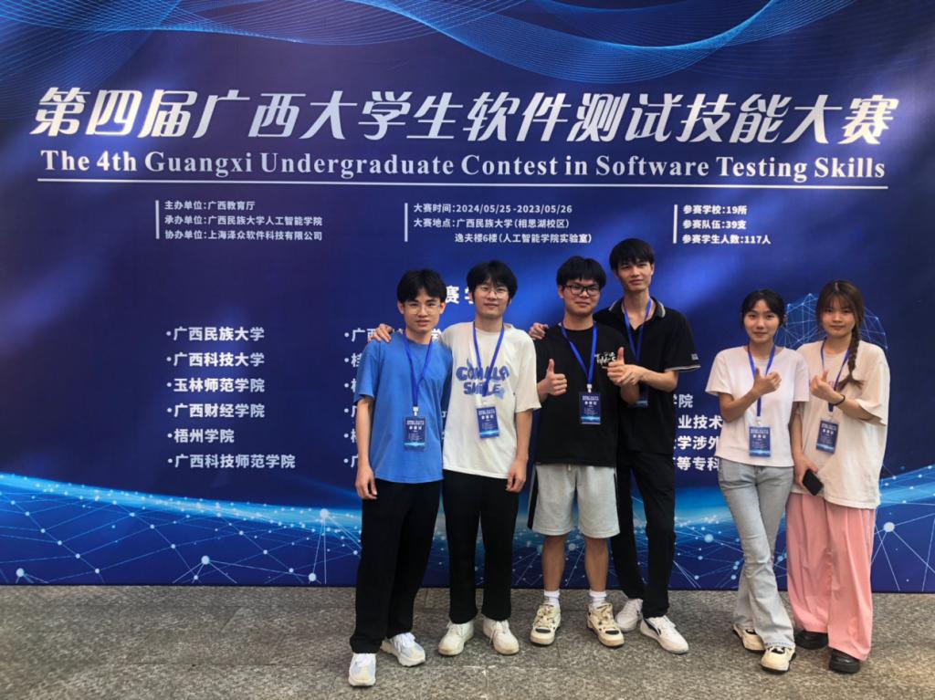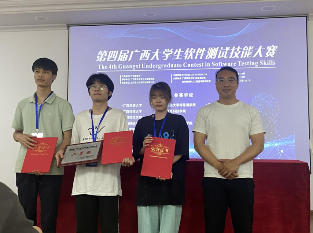 近日,第四届广西大学生软件测试技能大赛在广西民族大学圆满结束,大数据与软件工程学院参赛的两支队伍,在本次大赛中脱颖而出,获得了一等奖1项和二等奖1项的优异成绩。