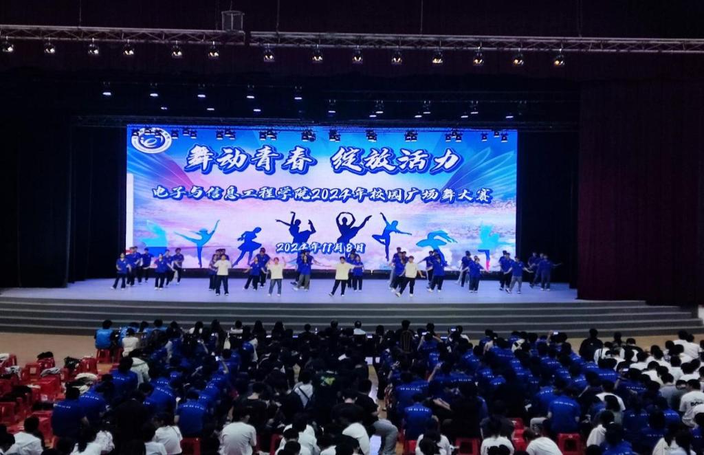 为展示大学生的青春活力和团队合作精神,鼓励大学生强身健体,做合格的四有新人,11月8日晚,电子与信息工程学院在体育馆三楼举办了“舞动青春 绽放活力”校园广场舞大赛。