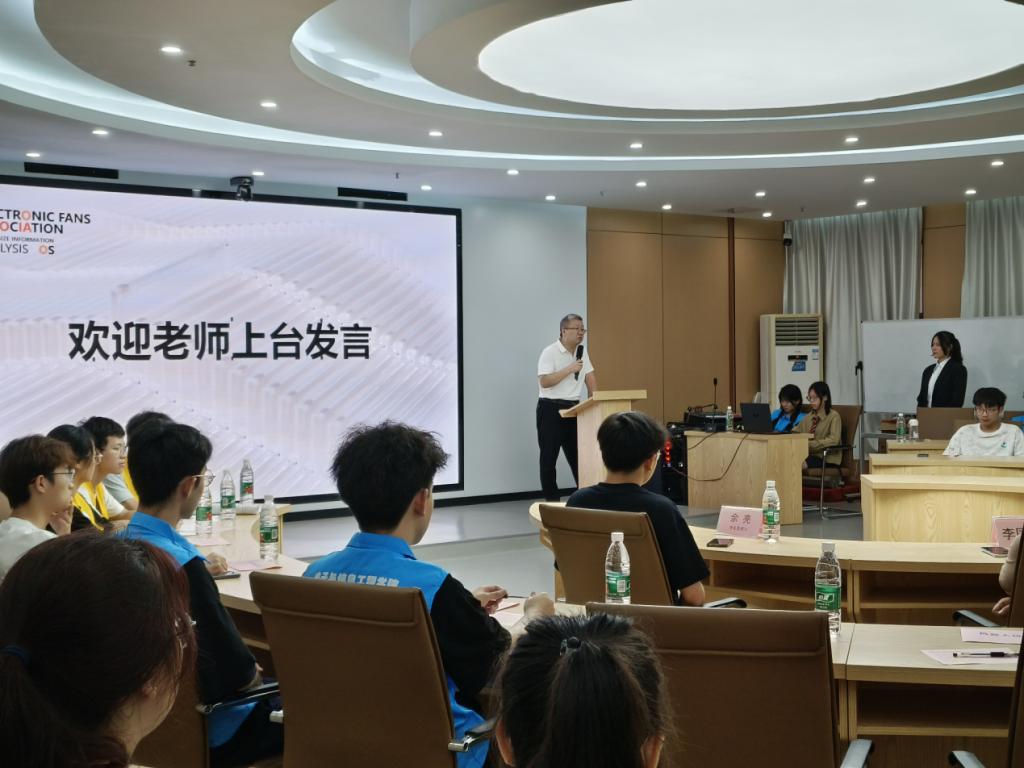 5月25日,电子科学技术协会于明科楼1108会议中心举行第十九届电子科学技术协会换届暨新任委员代表选举会议,电子与信息工程学院院长张文祥、电子教研室主任马文婧、实验室主任李国伟、通信教研室彭国晋、电子科学技术协会主管学生负责人余亮及校社联代表、电子与信息工程学院团委学生会主席、青年志愿者分会会长、副会长、机器人协会代表、机械与资源工程学院自动化协会会长,来自商学院、管理学院、大数据等十个二级学院的观众代表们参加会议。
