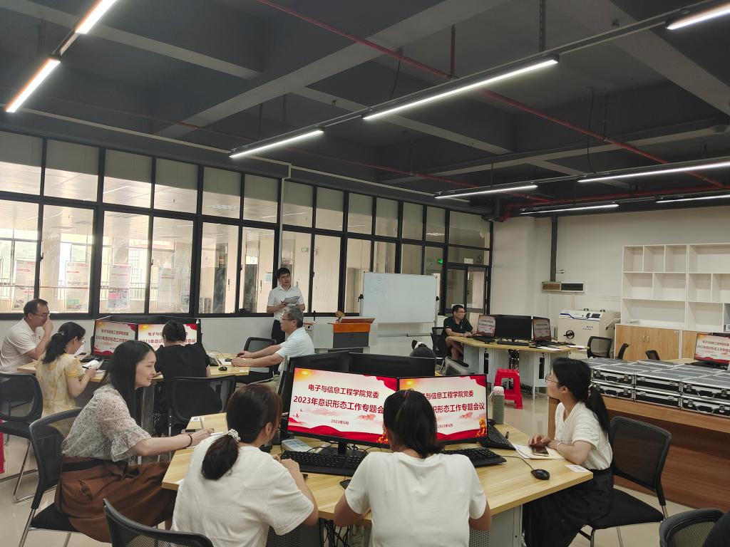 2023年6月14日,电子与信息工程学院党委召开第三次全面从严治党暨意识形态工作会议,学院全体教师党员参会。