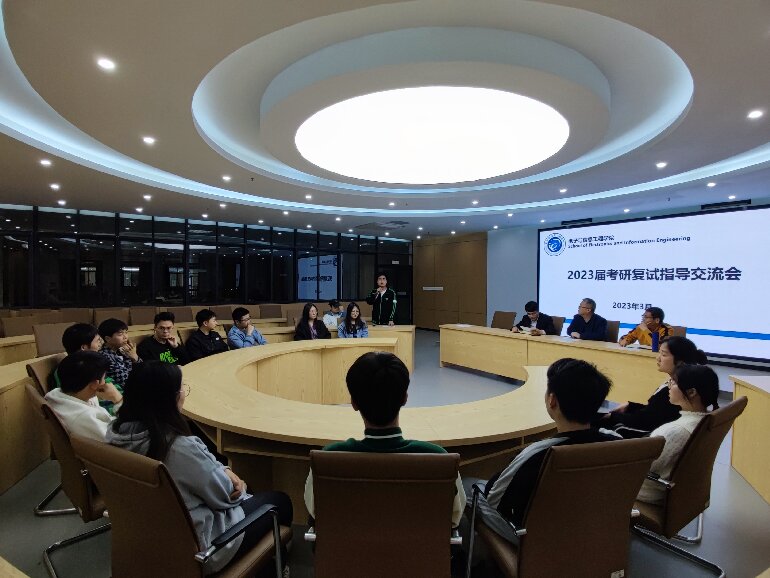 近期,考研国家线发布,为了更好的辅导考研上线的学生通过研究生复试,3月13日晚,电子与信息工程学院在科技楼1108报告厅举行2023届考研复试指导交流会,学院领导、教师代表、毕业班辅导员以及2023届考研上线的学生参加了交流会,会议由学院党委副书记黎国华主持。