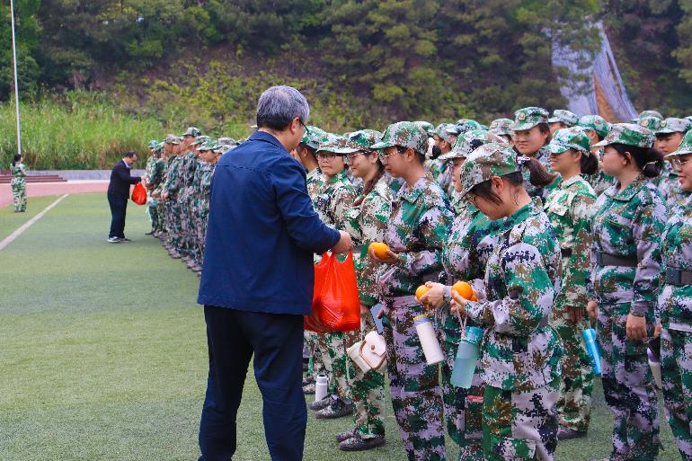 张文祥院长一行向参训学生送上了清甜的沃柑、饮料等慰问品。黎国华副书记对学生的军训态度、军训意志和军训效果表示肯定,希望同学们继续以高昂的斗志和饱满的热情完成军训任务,在接下来的学习生活中也能继续保持和发扬军人品质,努力学习、健康生活。