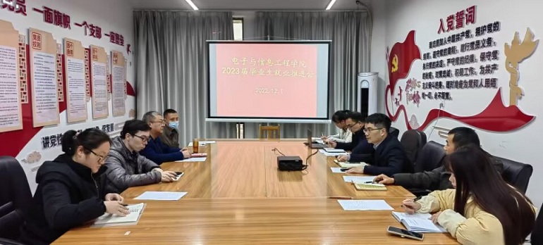 为全力做好2023届毕业生就业工作,推动学院学生高质量就业,12月1日下午,电子与信息工程学院在明科楼1204会议室召开2023届毕业生就业推进会,学院领导班子、教研室主任、毕业班辅导员参加会议,会议由学院党委副书记黎国华主持。