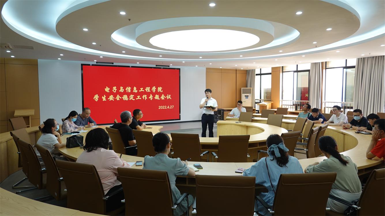4月27日,电子与信息工程学院在科技楼K1108会议室召开学生安全稳定工作专题会议。学院院长,党委副书记,全体辅导员、班主任参加会议。会议由学院党委副书记邓小林主持。