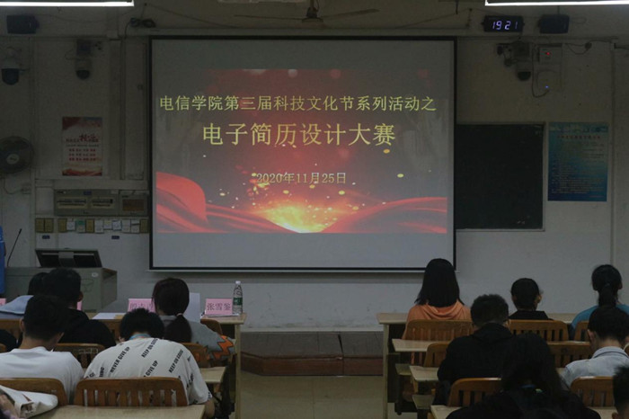 11月25日晚,电子与信息工程学院在明理楼N-303举办第三届科技文化节系列活动之电子简历设计大赛。