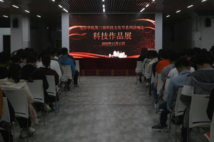 11月11日晚,电子与信息工程学院在大学生发展中心就业指导中心举行电信学院第三届科技文化节系列活动之科技作品展,获得2020年全国大学生电子设计竞赛一等奖、蓝桥杯软件设计大赛一等奖的李殷游,马溶,胡永鑫等展示并详细介绍了他们的获奖作品。