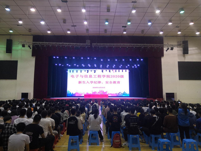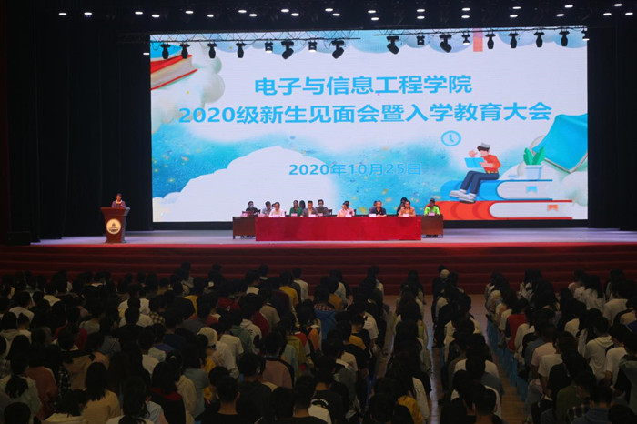 10月25日晚,电子与信息工程学院在体育馆三楼举行2020级新生见面会暨入学教育大会,学院领导、教研室主任、辅导员、新生班主任及全体2020级新同学参加了本次会议。