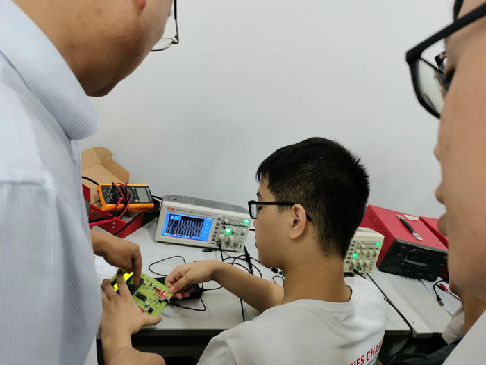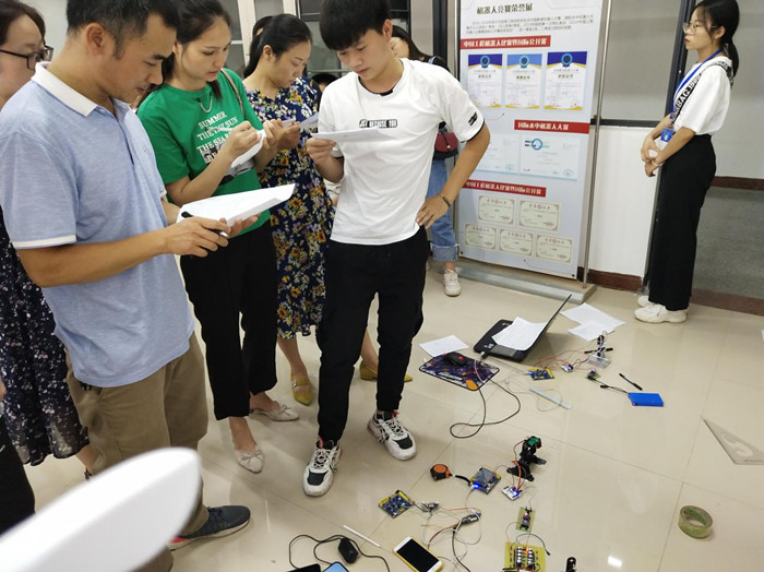 全国大学生电子设计竞赛是教育部倡导的大学生学科竞赛之一。竞赛两年一届,今年是广西区赛。竞赛以电子电路应用设计为主要内容,涉及模-数混合电路、单片机、射频电路、可编程器件、EDA软件工具和PC机的应用。通过竞赛,可培养大学生的实践创新意识,团队协作精神和理论联系实际的学风。竞赛分3个阶段,第一阶段,有62组,每组3人,合计186名学生报名参赛。9月23日下午2:30,由学院书记郭慧,院长张文祥,副院长侯义锋,副院长龚平主牵头,18名专业教师组成测评专家组在科技楼1209室对参赛作品进行测评。最终选出一等奖6组,二等奖11组,三等奖17组。其中一二等奖将参加第二阶段的比赛。