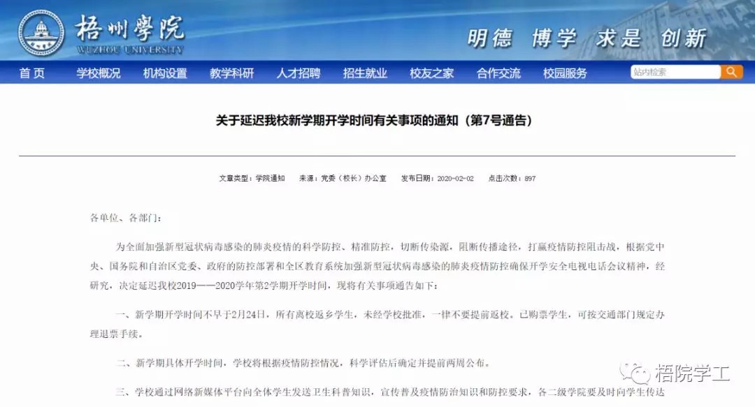 上一条:关于再次延迟我校新学期开学时间的通知(第10号通告)