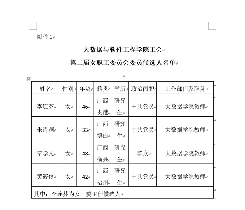 2、工会女职工委员会委员、主任候选人名单