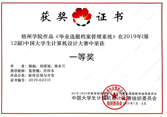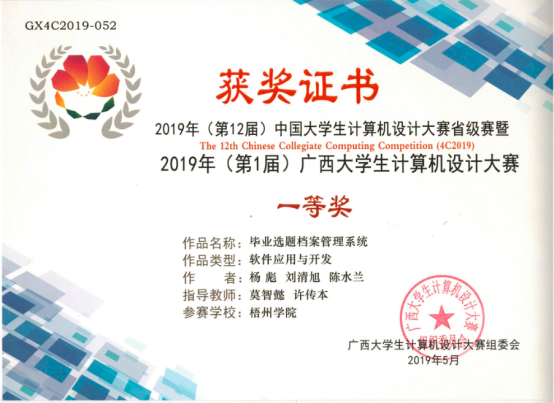 2019年(第1届)广西大学生计算机设计大赛一等奖