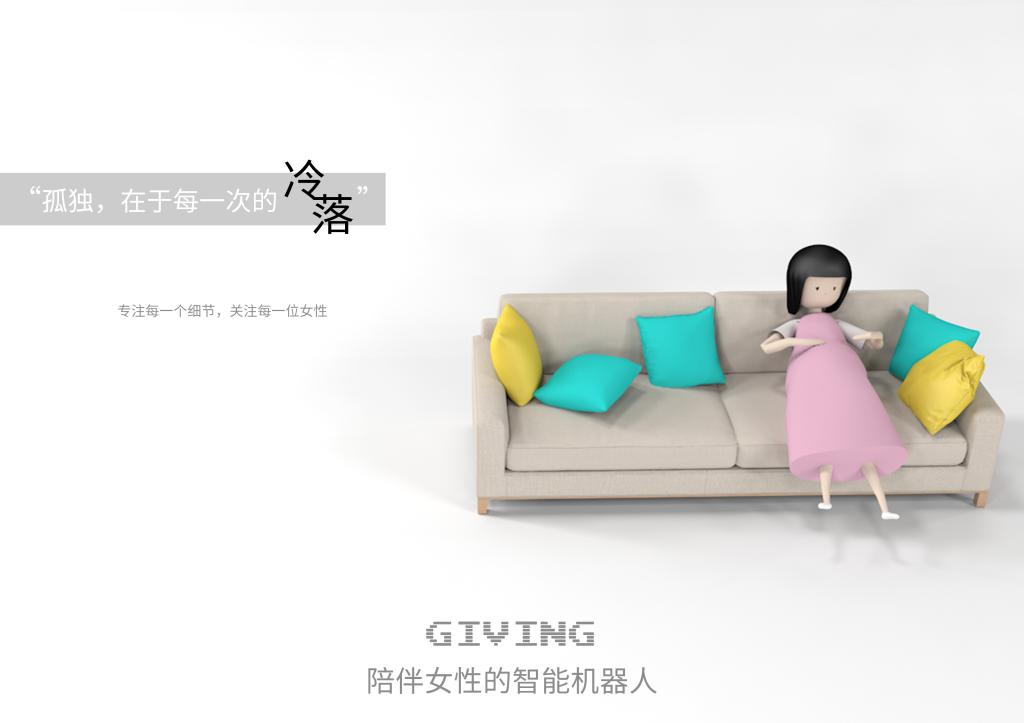 本作品名为《别让我孤独》,主题是人工智能畅想。从 “陪伴”和“孤独”的两个角度出发,在女性面对经期时,处于孕期行动不便时,以及年迈身体状况不好失眠时的三种情况,通过一个陪伴女性的智能机器人能对不同年龄阶段的女性的贴心照顾,还有女性在缺少陪伴,独自面对问题时的无力和痛苦的对比。反映了不同年龄阶段的女性在面临问题时,希望有人陪伴,害怕孤独的心情,呼吁社会关注女性健康,给予她们多一些关怀。