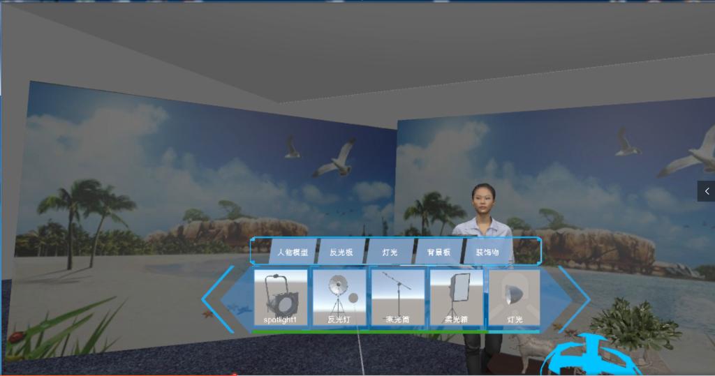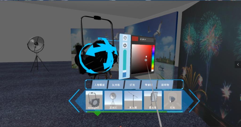 VR摄影棚既可以多人异地实时同步操作交流,亦可以单人进行操作。不仅可以以极低的价格完成传统摄影棚的拍照,模特的姿势和位置摆放,道具的摆放,灯光的调节,颜色的改变等等传统所具有的功能,同时也可以达到传统不能实现的功能,如多个用户在同一个房间进行同时操作,并且可以实时看到其他用户的操作和效果。大大的节约了学习摄影所需要的成本。
